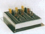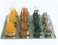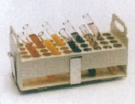 图3试管架:不锈钢材料制成可固定 在托盘上,一个试管架多可放24支。   图4烧瓶架:不锈钢电抛光制成,可固定在各 种型号摇板上。